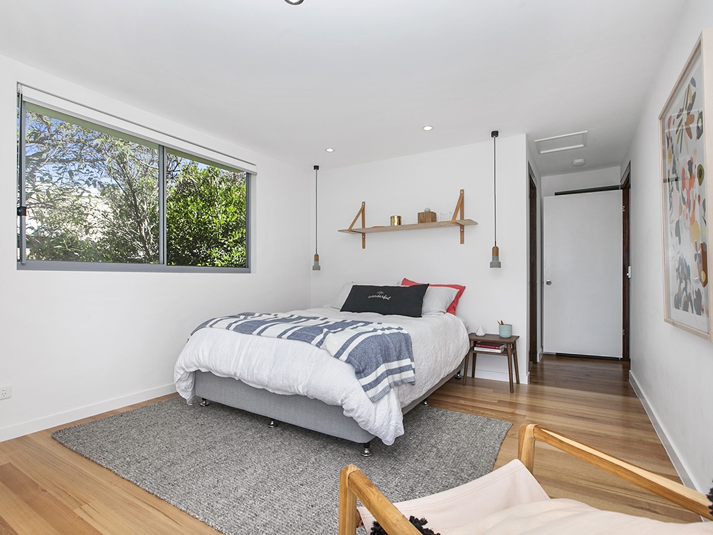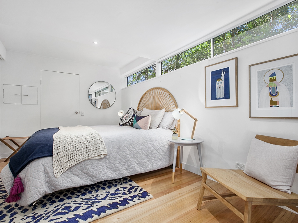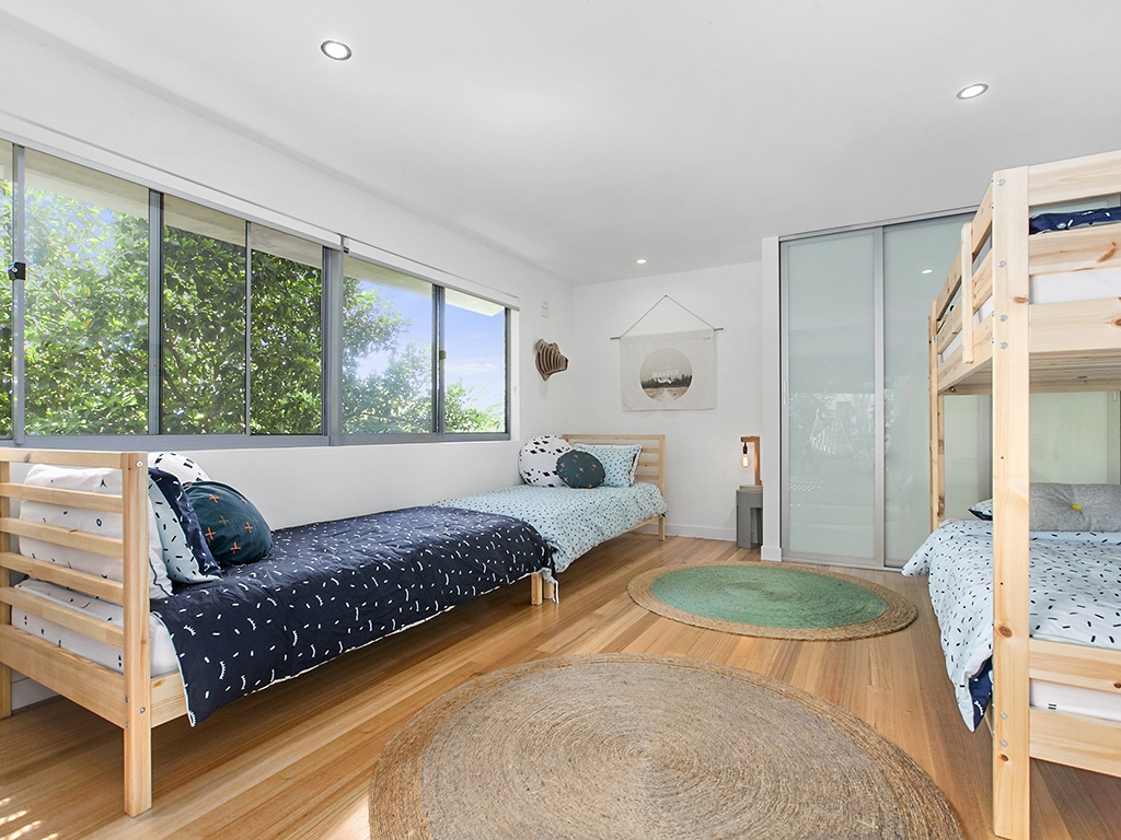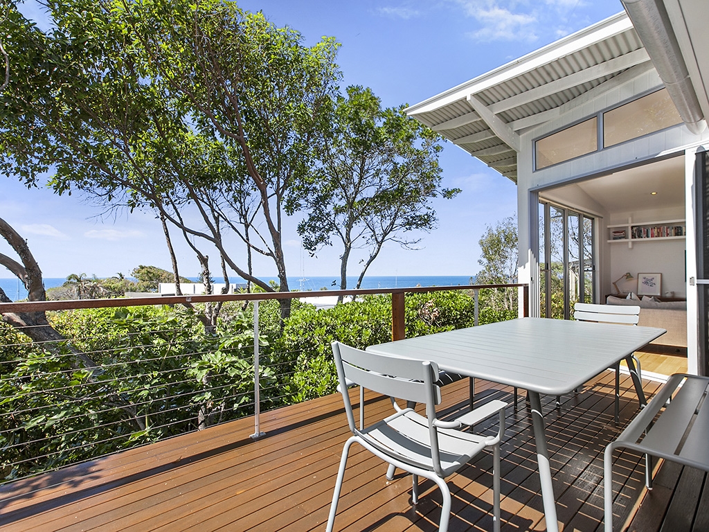 Seaviews at 12 Seaview Terrace in Sunshine Beach is an architecturally designed 3-bedroom beach house spread over 2 levels. Offering stunning panoramic ocean views it is a short stroll down the hill to the beach and less than a 10-minute walk to the main village.The house was designed by the iconic Maurice Hurst and has been stylishly furnished to reflect its coastal surroundings. Light pours in through the multitude of floor to ceiling windows and glass doors while surrounding trees provide privacy. This is a lovely colourful and comfortable holiday home.The timber floored entrance level is given over to the main living area with comfortable lounge suite, dining to seat 8 and gourmet kitchen. Or dine alfresco and en ...joy the views on the elevated deck with outdoor dining, daybeds and BBQ.A separate lounge area with SmartTV & DVD player adjoins the kitchen and master suite, with Queen bed and ensuite with shower. Enjoy ocean views and starry nights from the comfort of bed - the room can be shut off from the rest of the house or the french doors left open for maximum airflow.Downstairs is a second spacious lounge area with SmartTV that opens out onto the lower deck area. There is a small inbuilt kitchenette. This is a great kids retreat allowing parents to relax upstairs.The generously sized kids' room has a bunk bed and 2 x Singles, to sleep 4 in total. Doors open out onto the lower deck. The 3rd guest room has a Queen bed and external access to the front of the house. These rooms share a bathroom with shower (no bath).Seaviews will become a firm favourite to return to year after year and is ideally suited for 2 couples or 1-2 small families looking for somewhere close to the beach.Families with very small children should note that there is no safety gate on the stairs. The property is not enclosed but there is a small yard at the rear of the property, in addition to the lower deck area.Additional features| Air-conditioning in the main living area only| Lots of DVDs and board games provided| Laundry with washer and dryer| Bluetooth speaker system| Breville Nespresso coffee machine & NutriBulletBook directly with us and saveContact us today on 1300 810 944 or submit an enquiry and let us arrange your next Sunshine Beach holiday accommodation at 12 Seaview Terrace.The top bunk is only suitable for children over 9 years, as per Australian Safety Standards.Beach towels are not provided.No parties or functions please.