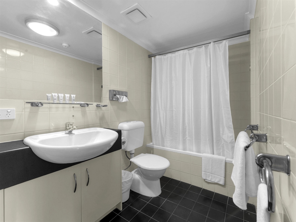 The apartments feature a separate bedroom with queen bed (No Twins) & built in wardrobes, separate living/dining room & kitchen, with private ensuite with shower over the bath in all apartments.