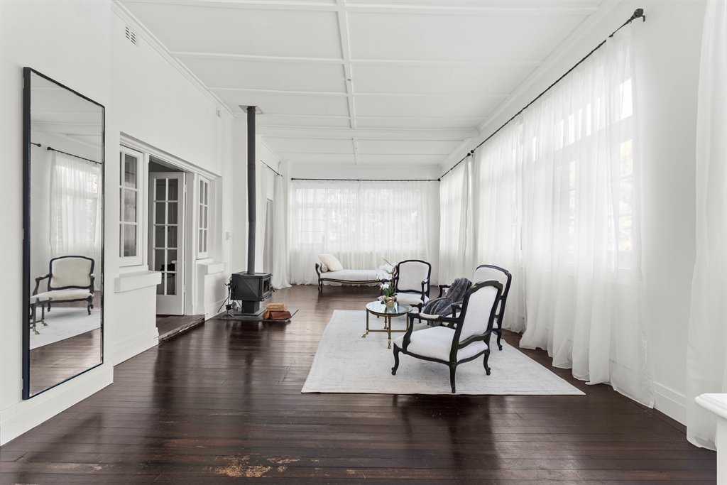 Also known as our Grooms Suite. With two bedrooms containing a king bed in one room and 4 single beds in the other, our newly renovated Art-Deco bathroom, a central entry foyer and lounge area in the enclosed sun room.