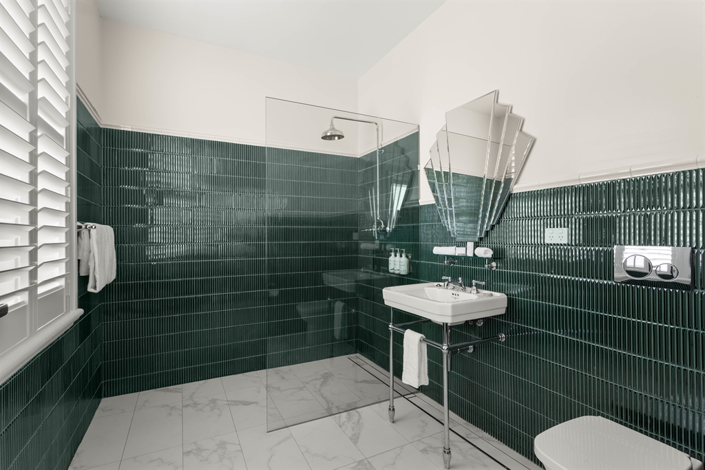 A cosy room including twin bedding with a large Art-Deco shared male/female bathroom. These bathrooms are only shared with the other heritage rooms on your floor,i.e 6 other rooms max. Robes and slippers are provided.