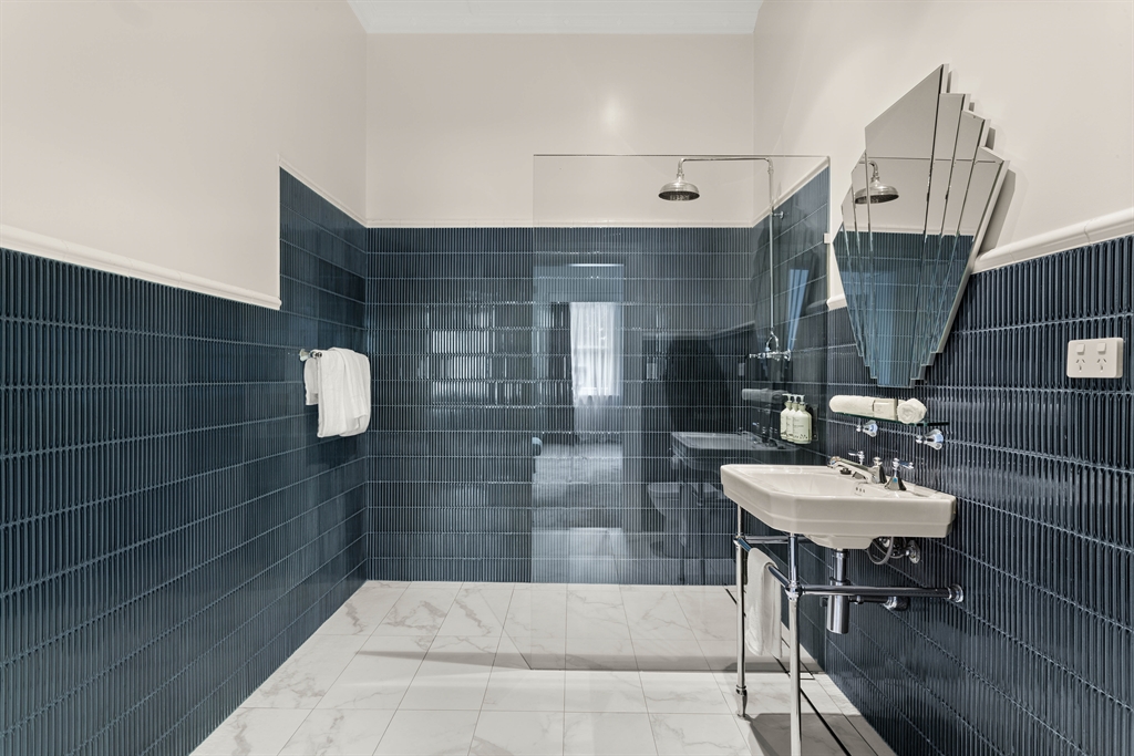 A cosy room including a king, queen or twin bedding with a large Art-Deco shared male/female bathroom. These bathrooms are only shared with the other heritage rooms on your floor,i.e 6 other rooms max. Robes and slippers are provided.