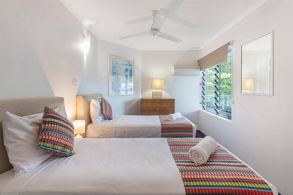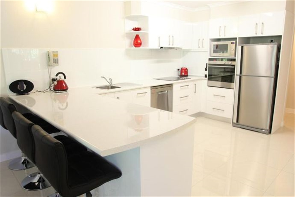 Modern fully self contained apartment Queen / 2 singles Existing bedding for 4 people - 5th person on rollaway bed, suitable for a child.Full size kitchen/laundry 5 mins walk to Main St, Beach, Marina. FREE Wi-Fi HEATED Pool Tour Desk Rate for 4 persons
