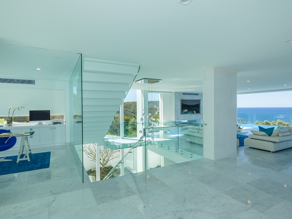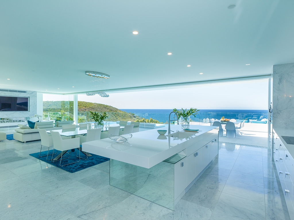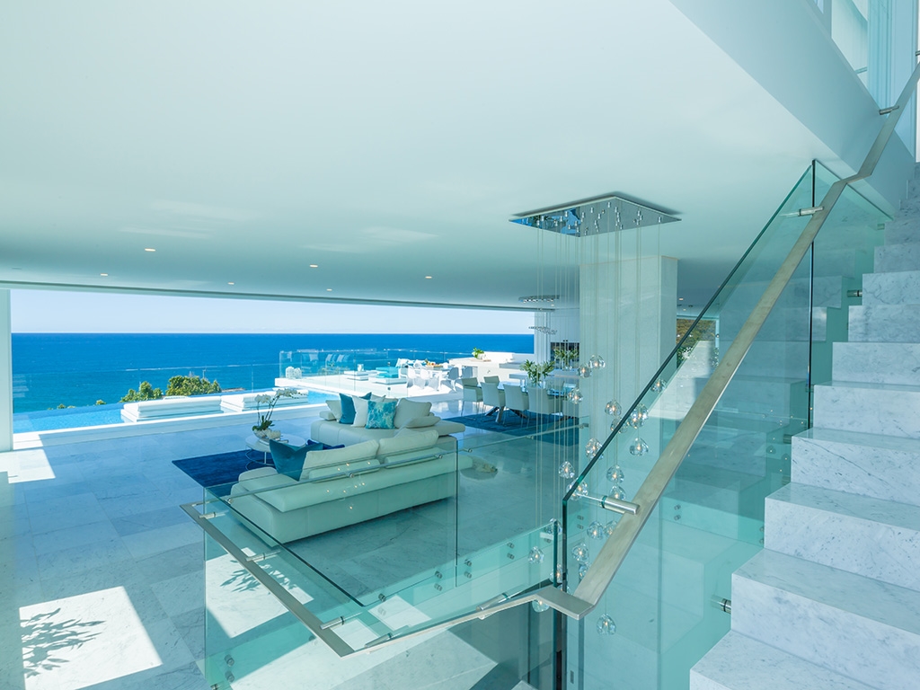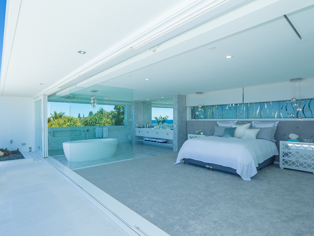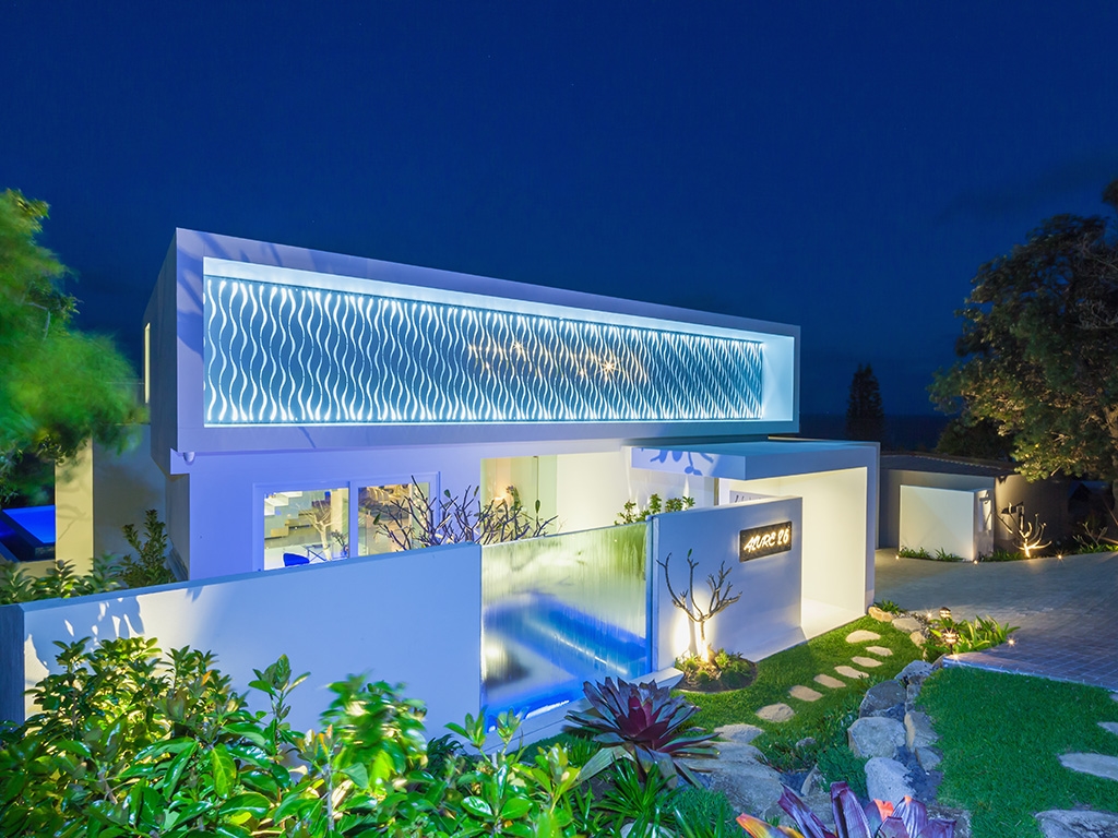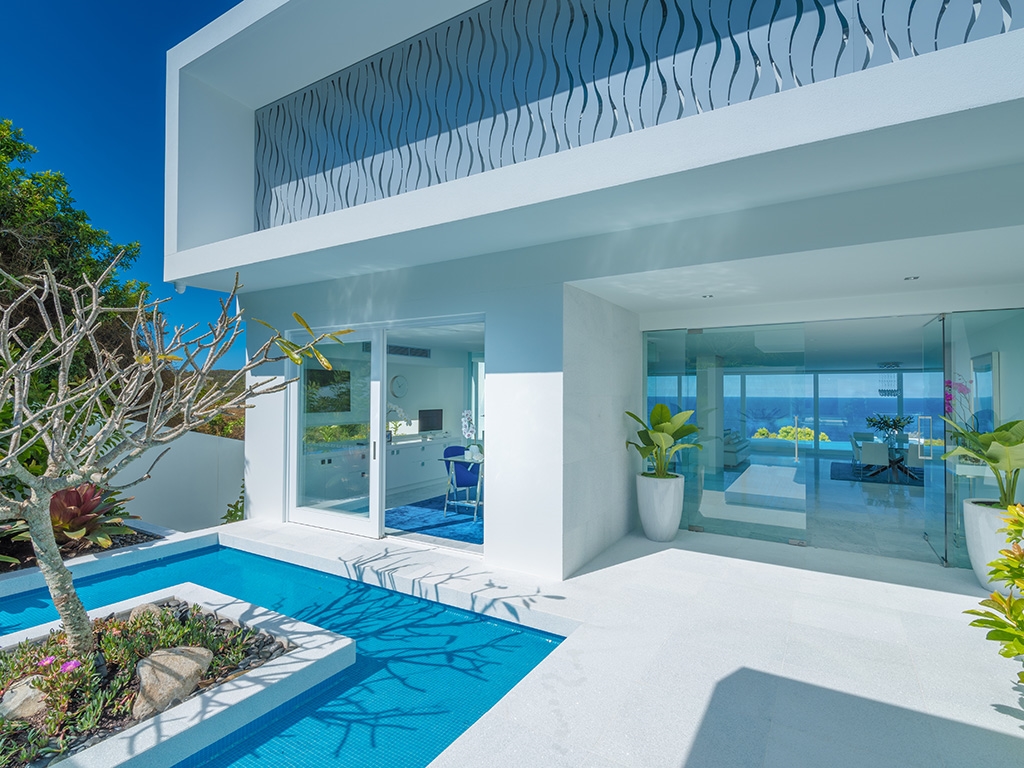 Azure at 26 McAnally Drive in Sunshine Beach is the ultimate beachside sanctuary and takes holiday life by the ocean to a whole new level of unrivalled luxury.Please note that all bookings for this property are approved by the owner prior to the booking being confirmed.Words are simply not enough to describe the grandeur, sophistication, and careful attention to detail that this impressive residence exudes.Great care has been taken in its multi-award-winning design to ensure that absolutely nothing detracts from the awe-inspiring blue sky and ocean views that will mesmerise you from dawn to dusk.The result is a submersive luxe experience like no other – this is a holiday home that without a do ...ubt sets the standard for all others.Entering the property you feel like you can literally step out onto the ocean – it’s hard to tell where the pool ends and the ocean begins.White marble floors, subtle lighting and the use of glass and mirrored surfaces throughout create clean simple lines and encourage guests to do nothing but relax.The property sleeps up to 8 guests across 4 bedrooms, the pinnacle of which is the King master suite encompassing the entire top floor, complete with its own terrace and rooftop spa, huge open plan ensuite and separate dressing room. Quite simply breathtaking.The additional bedrooms are all on the lower level and all have Double beds. One has an ensuite with shower while the others share a suitably luxurious and spacious bathroom with deep bathtub and rain shower.Full floor to ceiling windows across the entire ground floor look out onto your own private rainforest. Electric blinds in all rooms can be lowered if preferred.The rest of the ground floor is given over to two lounge areas, one of which is a media room with huge curved-screen TV that can be closed off via sliding doors to create a cinematic experience. Light filters in through huge double-storey side windows and underwater windows in the pool above.The entrance level comprises the main living area with fully retractable sliding doors that open out to the spacious terrace and infinity pool. Take a front-row seat and take in the migrating whales, starry nights, soothing surf, and golden sunrises.The additional features of Azure are too many to list but guests can rest assured that they will have everything they need to be comfortable during their stay here, as you would expect in a property of this calibre.Access to the Noosa National Park and the beach are a short stroll away.A complimentary welcome hamper is provided for arriving guests.In-house services such as catering and health and wellbeing can be arranged as required. Please enquire when booking.How to bookAll online bookings for this property are approved by the owner prior to the booking being confirmed. Or call us on 1300 810 944 to enquire and let us arrange your next Sunshine Beach luxury holiday accommodation at Azure, 26 McAnally Drive.A 7-night minimum stay applies at all times.A $5,000 bond is required 30 days before arrival. This will be refunded within 14 days of departure.Please note that due to the open-plan structure and the nature of the furnishings in this property it is not suitable for very young children. Please check when enquiring.