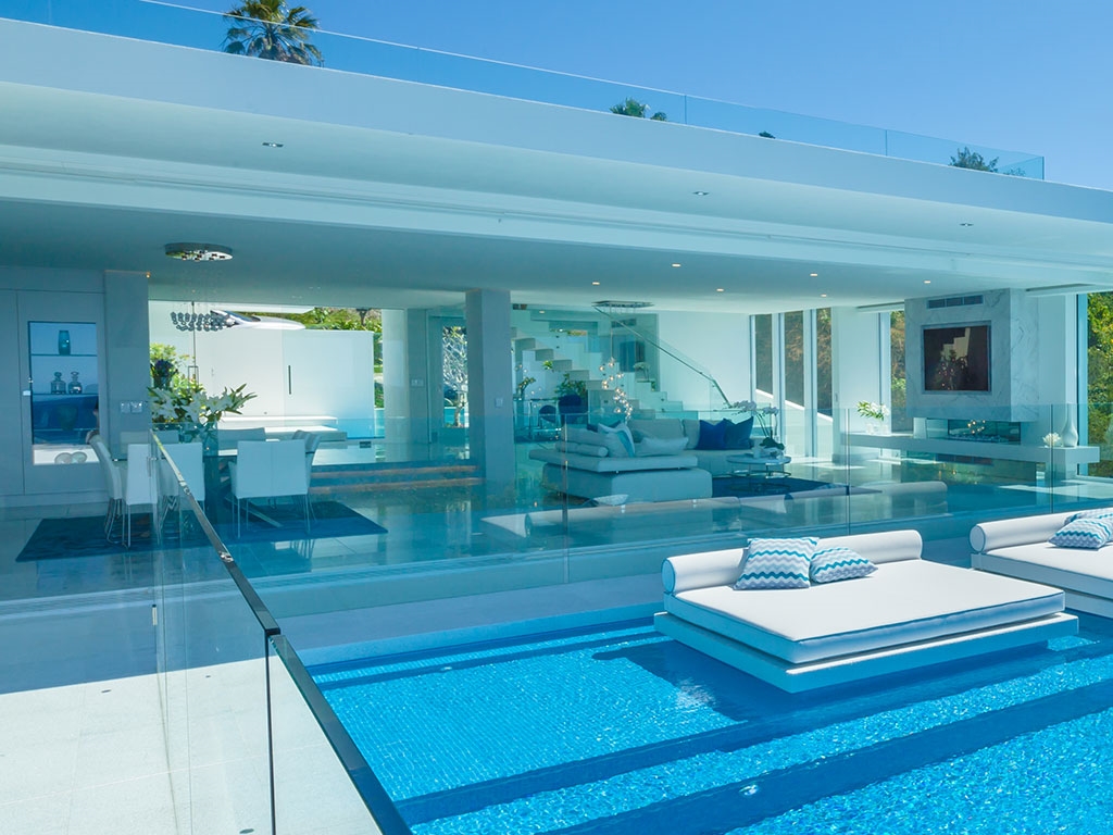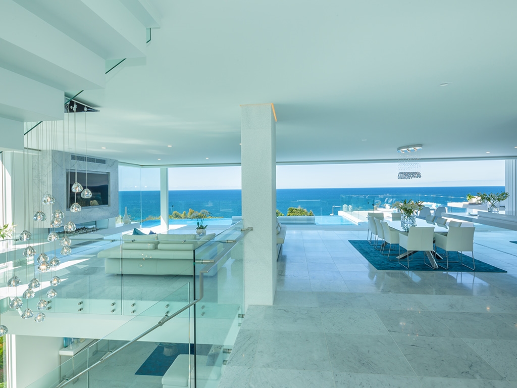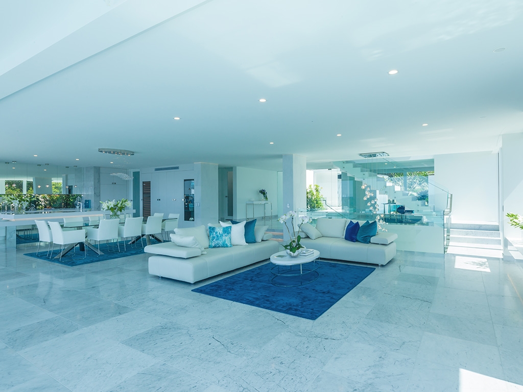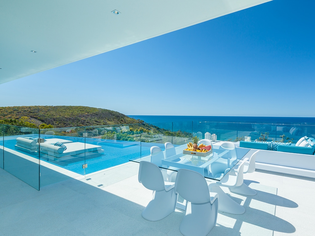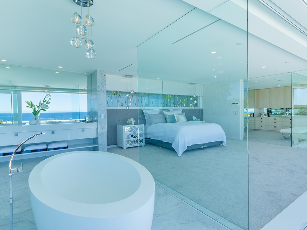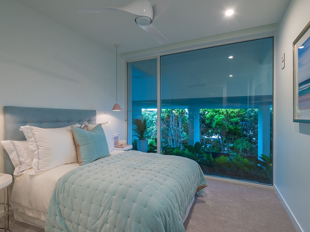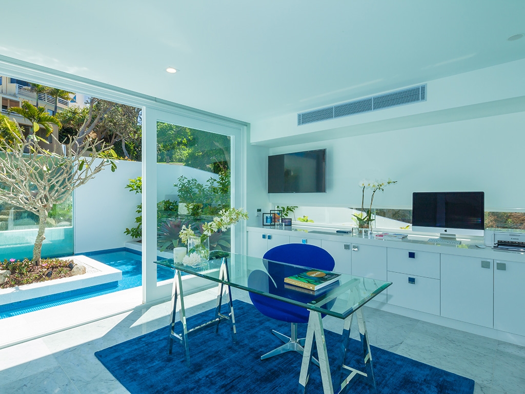 Azure at 26 McAnally Drive in Sunshine Beach is the ultimate beachside sanctuary and takes holiday life by the ocean to a whole new level of unrivalled luxury.Please note that all bookings for this property are approved by the owner prior to the booking being confirmed.Words are simply not enough to describe the grandeur, sophistication, and careful attention to detail that this impressive residence exudes.Great care has been taken in its multi-award-winning design to ensure that absolutely nothing detracts from the awe-inspiring blue sky and ocean views that will mesmerise you from dawn to dusk.The result is a submersive luxe experience like no other – this is a holiday home that without a do ...ubt sets the standard for all others.Entering the property you feel like you can literally step out onto the ocean – it’s hard to tell where the pool ends and the ocean begins.White marble floors, subtle lighting and the use of glass and mirrored surfaces throughout create clean simple lines and encourage guests to do nothing but relax.The property sleeps up to 8 guests across 4 bedrooms, the pinnacle of which is the King master suite encompassing the entire top floor, complete with its own terrace and rooftop spa, huge open plan ensuite and separate dressing room. Quite simply breathtaking.The additional bedrooms are all on the lower level and all have Double beds. One has an ensuite with shower while the others share a suitably luxurious and spacious bathroom with deep bathtub and rain shower.Full floor to ceiling windows across the entire ground floor look out onto your own private rainforest. Electric blinds in all rooms can be lowered if preferred.The rest of the ground floor is given over to two lounge areas, one of which is a media room with huge curved-screen TV that can be closed off via sliding doors to create a cinematic experience. Light filters in through huge double-storey side windows and underwater windows in the pool above.The entrance level comprises the main living area with fully retractable sliding doors that open out to the spacious terrace and infinity pool. Take a front-row seat and take in the migrating whales, starry nights, soothing surf, and golden sunrises.The additional features of Azure are too many to list but guests can rest assured that they will have everything they need to be comfortable during their stay here, as you would expect in a property of this calibre.Access to the Noosa National Park and the beach are a short stroll away.A complimentary welcome hamper is provided for arriving guests.In-house services such as catering and health and wellbeing can be arranged as required. Please enquire when booking.How to bookAll online bookings for this property are approved by the owner prior to the booking being confirmed. Or call us on 1300 810 944 to enquire and let us arrange your next Sunshine Beach luxury holiday accommodation at Azure, 26 McAnally Drive.A 7-night minimum stay applies at all times.A $5,000 bond is required 30 days before arrival. This will be refunded within 14 days of departure.Please note that due to the open-plan structure and the nature of the furnishings in this property it is not suitable for very young children. Please check when enquiring.