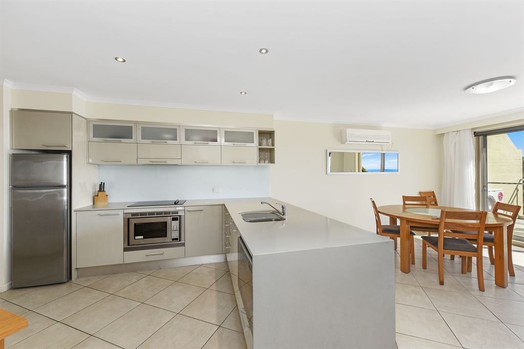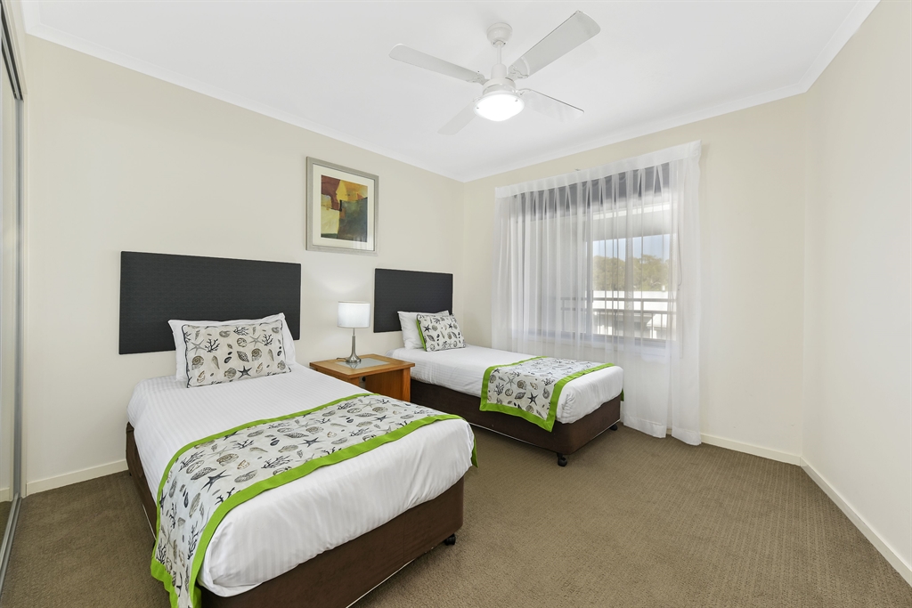 Deluxe 2 Bedroom Apartment with 1 king bed and 2 singles. Enjoy a spa bath, kitchen, laundry and private balcony with some apartments offering water glimpses.