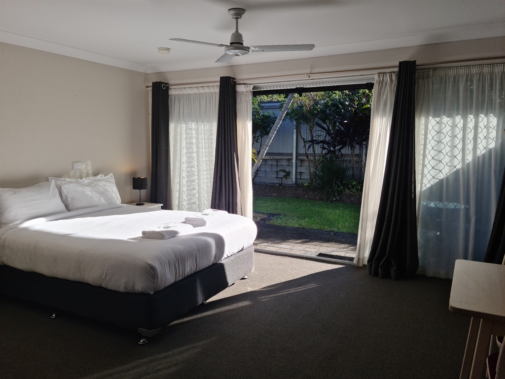 An extremely comfortable queen bed with kitchenette, air-conditioning and your own outdoor living.