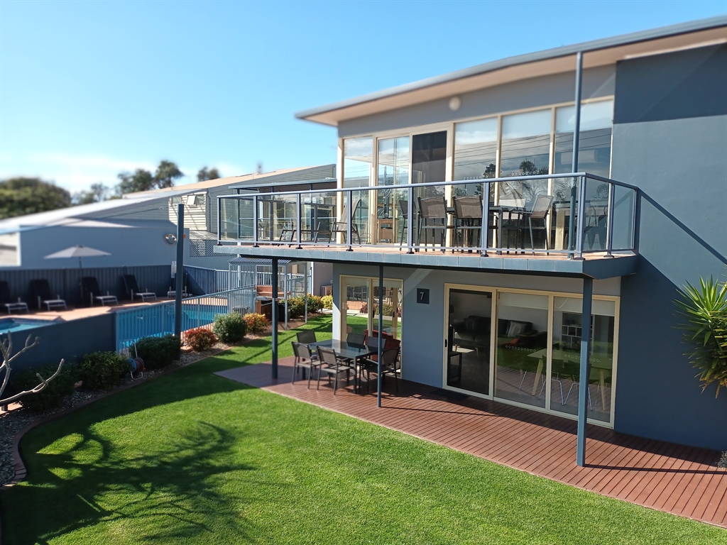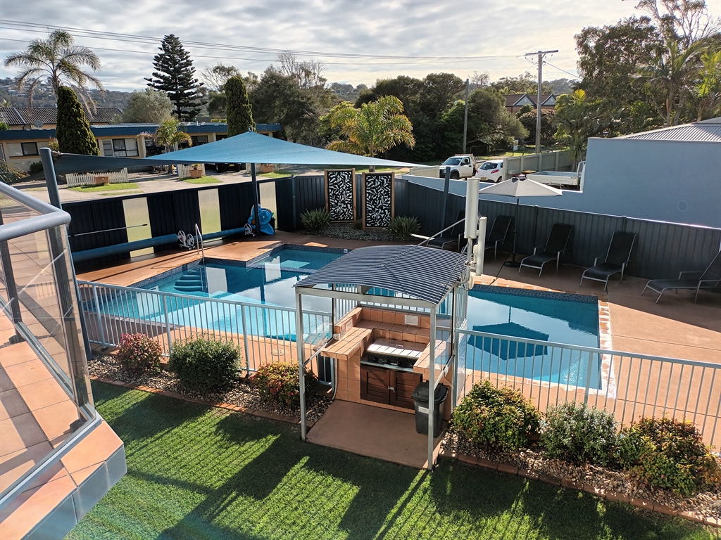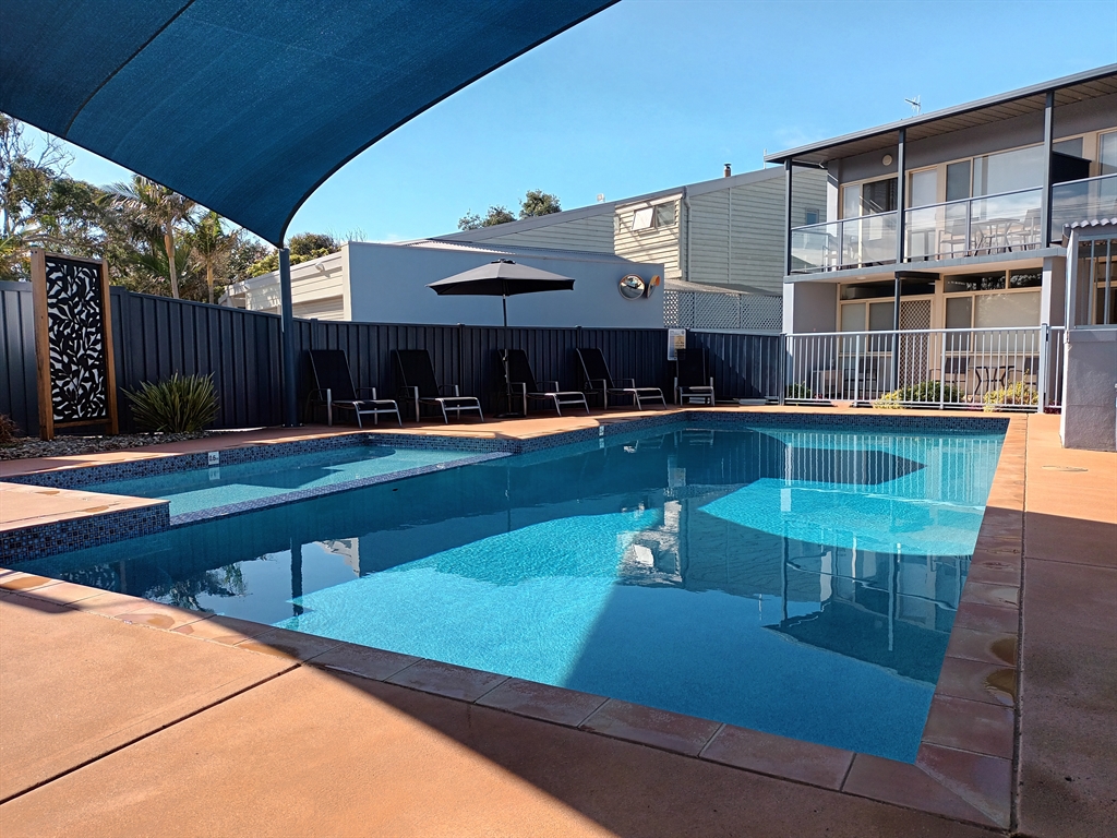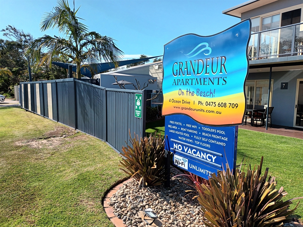 Welcome to Grandeur Holiday Units, Merimbula.We are situated on the beautiful Fishpen area of Merimbula's Main swimming & surfing beach. Grandeur are the ONLY holiday units in Fishpen which back directly onto the main beach, giving you DIRECT beach access. Enjoy Swimming, surfing, sailboarding, fishing and beachcombing which are all at your back door. It is a short, pleasant stroll to the main shopping centre and just 150m to a take away and Milk Bar. Walk to town and relax in one of the many Cafe's, Restaurants or Clubs. Enjoy shopping in many of the boutique stores which Merimbula has to offer.Grandeur's 1, 2 and 3 bedroom units are situated in a quiet, sunny, North facing position. All units are fully sel ...f-contained, including Free AUSTAR TV and DVD players. Wireless internet is also available (charges apply)Grandeur Units boast the largest electric heated pool on the Fish pen. There is also a toddlers pool and the average temperature is around 28 degrees in Summer & 25-26 degrees in the cooler months. BBQ facilities are available.Merimbula has much to offer. Weather you are after a quiet, relaxing holiday or prefer to keep on the move with bowls, golf, tennis, fishing or surfing.Darren your Resident Manager can assist you with all your holiday requirements
