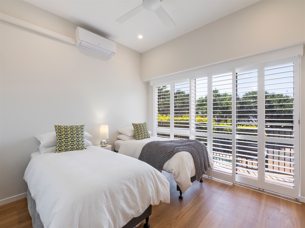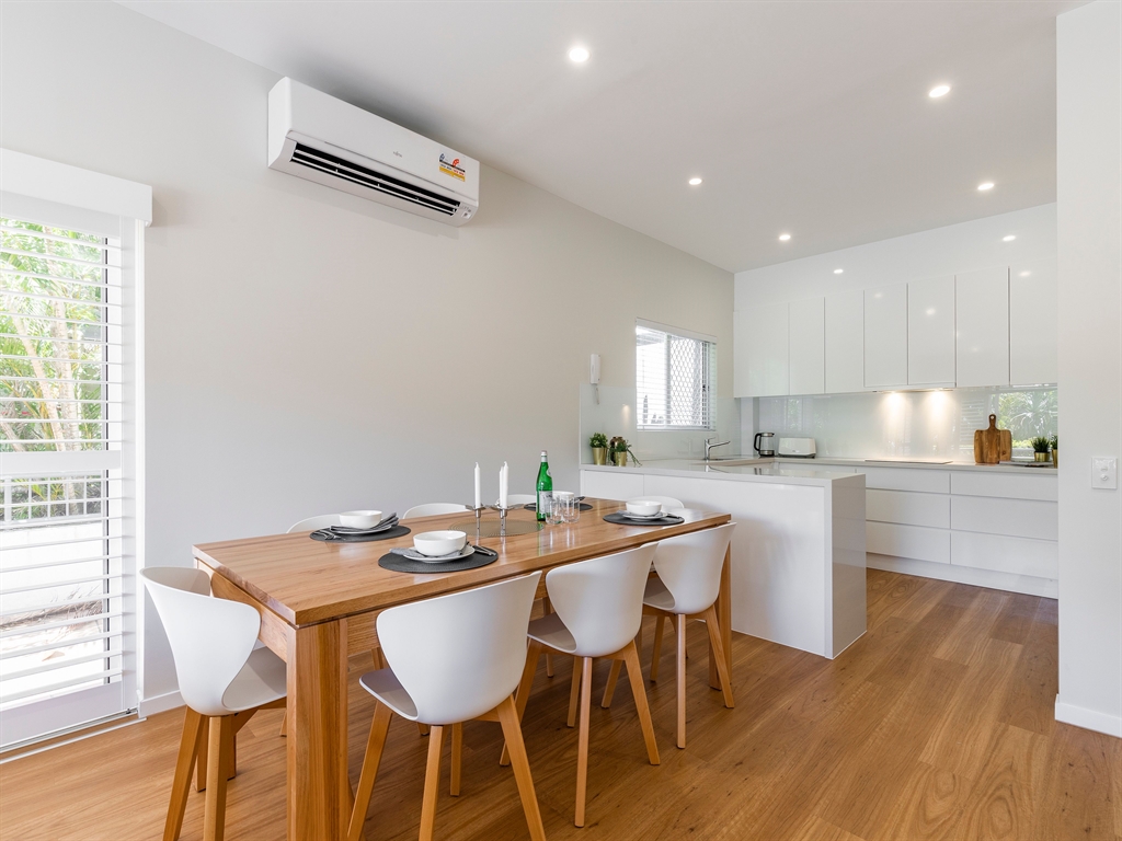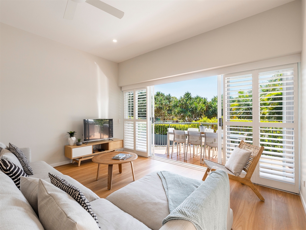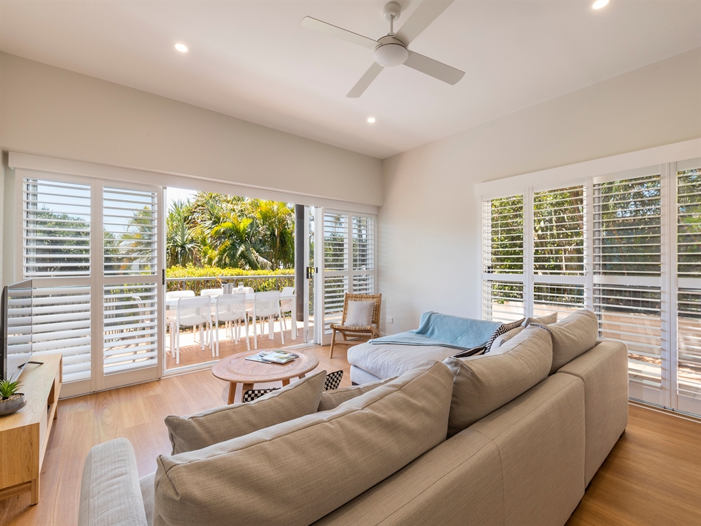 Belmore Terrace is one of Sunshine Beach’s most sought after streets. There is direct beach access across the road from this lovely apartment at 1/15 Belmore Terrace, Sunshine Beach. The main village is a very short stroll away.1/15 Belmore Terrace is a two-bedroom first-floor apartment in a complex of just five. It has recently been completely renovated. It is fresh and modern with a huge wraparound terrace and view over the shared pool. It’s perfect for a small family or 1-2 couples looking to enjoy some quality time together.The main living area features a smart kitchen complete with all mod-cons. There is a dining table to sit 8, and a large comfortable couch that looks out onto the terrace. There is a SmartTV wi ...th Netflix. Glass and louvred sliding doors on both sides of the lounge area can both be opened to let the cooling ocean breezes in. There is also air-conditioning in this area.The main bedroom has a Queen bed, walk-through robe and ensuite with shower. The second bedroom has two singles, one of which has a trundle underneath. Both rooms are air-conditioned and have ceiling fans. Both have sliding doors out to the terrace with louvred shutters.There is a second bathroom with over-bath shower and a small integrated laundry.Outdoors on the terrace, there is a dining table for 8 and a BBQ for guest use. For those with children, the terrace overlooks the pool allowing parents to relax while the kids swim within eyesight.Sunshine beach is patrolled all year round. The village is a 200m stroll away and offers a good selection of cafes, bars and restaurants. The apartment really is in one of the best locations from which to enjoy everything that this popular beach side suburb has to offer.Contact us today on 1300 810 944 or submit an enquiry and let us arrange your next Sunshine Beach luxury holiday accommodation at 1/15 Belmore Terrace.