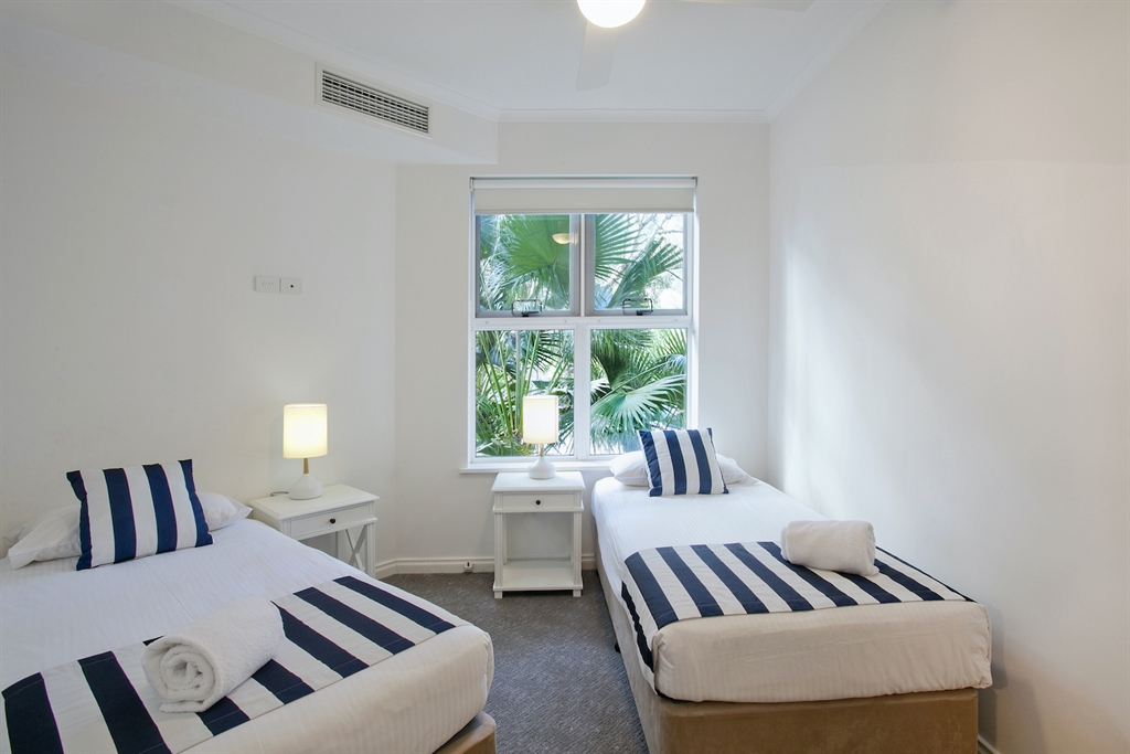 Rates are for 4 people. Maximum occupancy is 4. Two bedroom fully self-contained apartment including full kitchen and laundry facilities, air con., balcony, lounge, dining area.