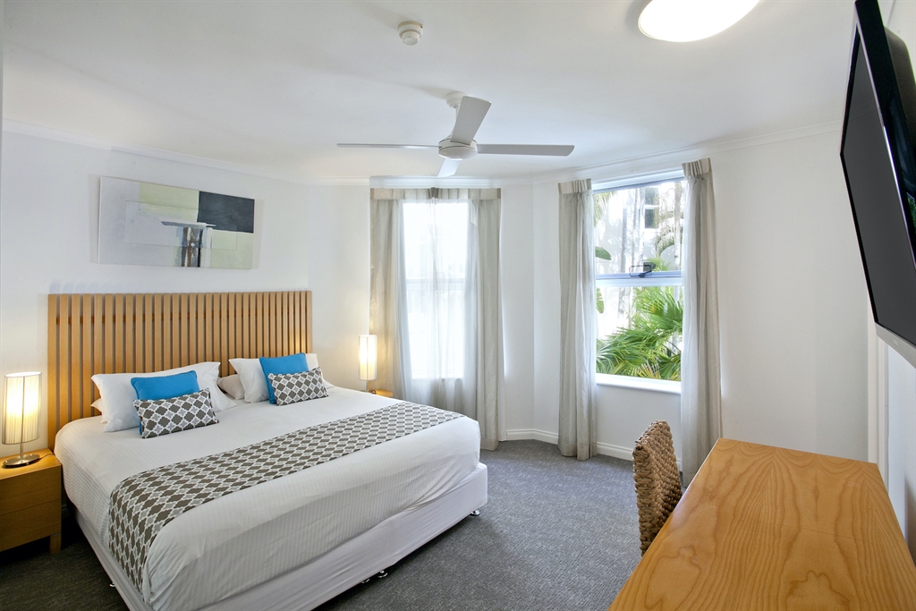 Relax in a spacious one bedroom air-conditioned superior apartment with a variety of sleeping configurations in either a king, queen, or by arrangement, twin beds with adjoining ensuite bathroom.