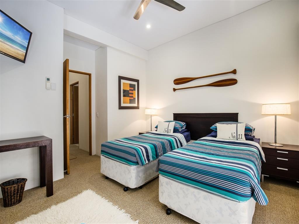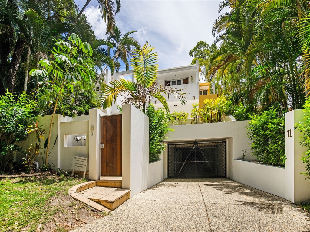 1/11 Mitti Street is a hidden oasis nestled in amongst the tranquil rainforest at Little Cove. This is one of Noosa’s most sought after holiday locations. You will love being just steps away from Noosa’s National Park, sheltered Little Cove beach, and a short stroll to Hastings Street.This unique and modern, 3 bedroom, 2 bathroom duplex comfortably sleeps 6 (or 8 on trundles). The home offers four levels of contemporary living that reflect the very best in modern coastal design.Upstairs is the master suite with King bed and ensuite. A large bath looks out to an enclosed balcony. A second Queen bedroom and a third bedroom with 2 x Singles plus 2 x trundles are also on this level. These rooms share a bathroom with a la ...rge walk-in shower.The top floor is given over entirely to a massive terrace offering lovely views. This is a wonderful space for sun-worshippers or for enjoying sunset drinks. There are superb views across Laguna Bay and to Noosa’s North Shore.The mid-level features two open-plan living areas, designed for comfort and privacy. One of the rooms flows seamlessly out onto the plunge pool area.The large dining area is serviced by a quality fully-equipped kitchen with all modern appliances. Or choose to dine outdoors on the sunny front terrace with outdoor table and kitchenette. There are a BBQ and additional dining area by the plunge pool.The house is air-conditioned throughout and there are ceiling fans in the bedrooms.For a property of this location and quality, 1/11 Mitti Street in Little Cove is very well priced to offer you an affordable Noosa Luxury Holiday location.Contact us today on 1300 810 944 or submit an enquiry and let us arrange your next Little Cove luxury holiday accommodation at 1/11 Mitti Street.