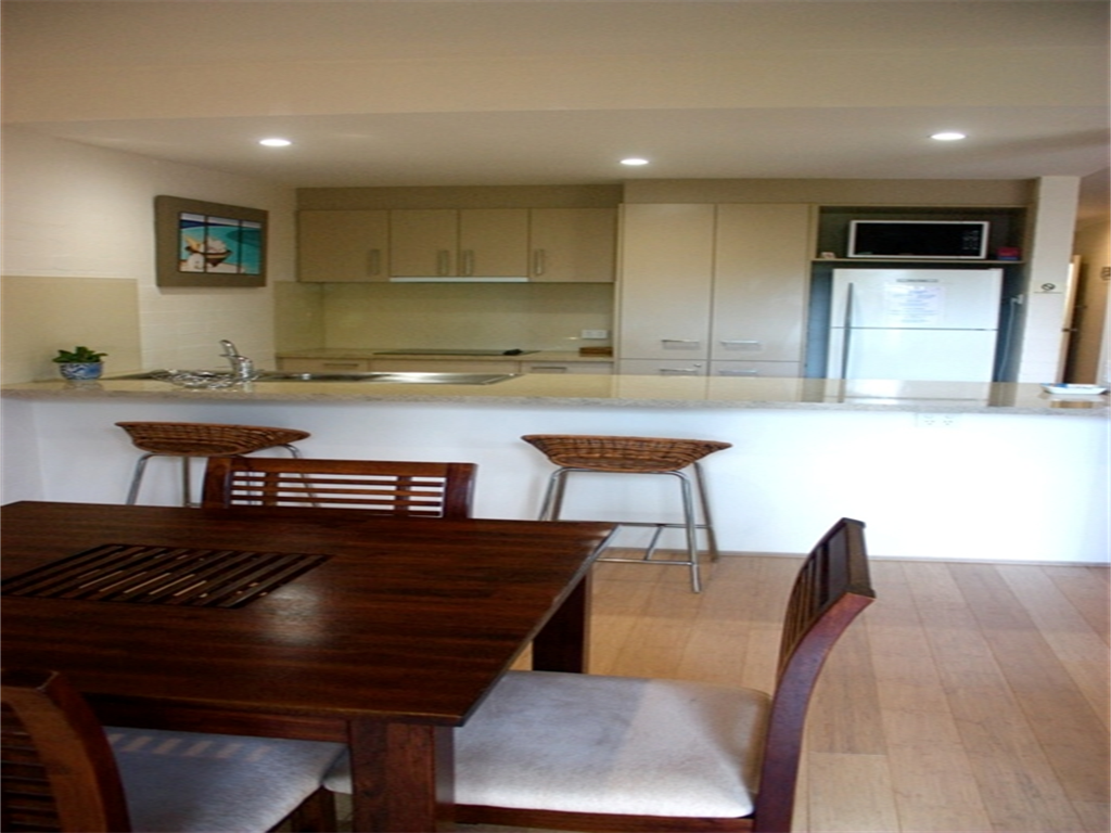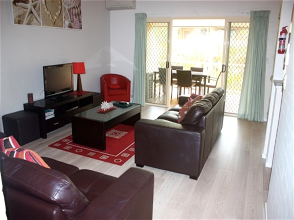 Rates are for 4 people. Max occupancy is 5 people. Bed configuration is a queen and 2 single beds. Apartments are fully self-contained, airconditoned with ceiling fans & Austar. Apts are non-smoking.