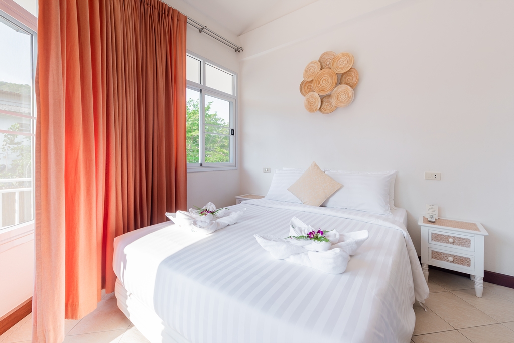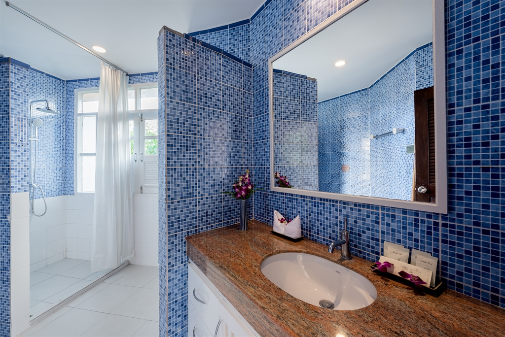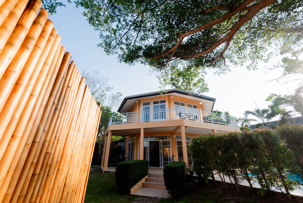 2 Bedrooms : Queen size / Twin + sofa bed in living roomTwin Villa enjoys a free form, kidney shaped, 7 x 4-meter swimming pool with deck in the garden. There is a stepped entry and the pool has varying depth of 1.2 – 1.6m.