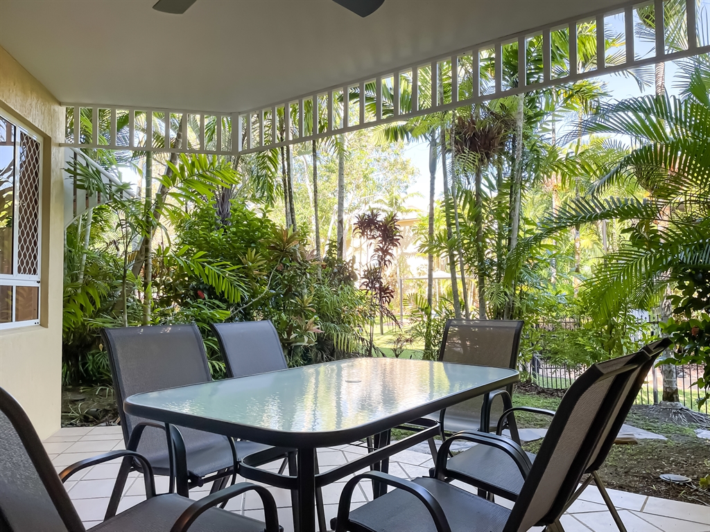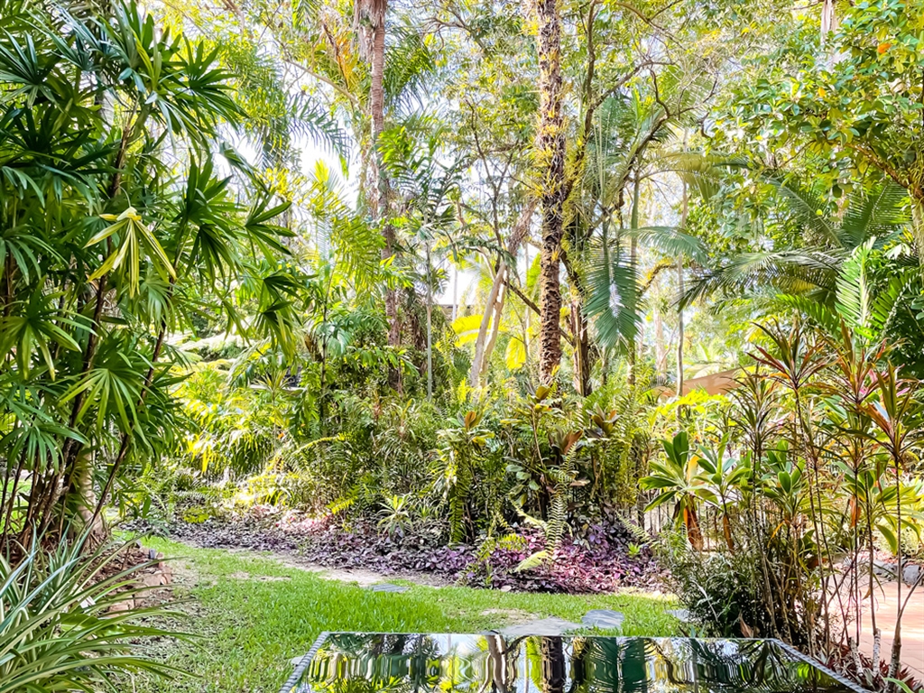 130 sqm • 3 Bedrooms • 2 Bathrooms • 1 Bathtub • Full laundry facilities • Self-contained kitchen • Full-sized fridge • private terrace • Air conditioned • WiFi • Smart TV • Foxtel • DVD & CD player • Hairdryer • Iron/Ironing board • Non-smoking rooms – smoking on terrace only • 10 minutes by car to Cairns CBD.All of our spacious, self-contained 3 Bedroom Apartments are individually designed. Combining kitchen, dining and lounge area through an open plan living concept. Bedding configuration, sleeps up to 6 people: 2x Queen beds and 2x single beds. 2x bathrooms, 1x bathtub. Find yourself immersed in our large, lush and tranquil property. Green views wherever you go.