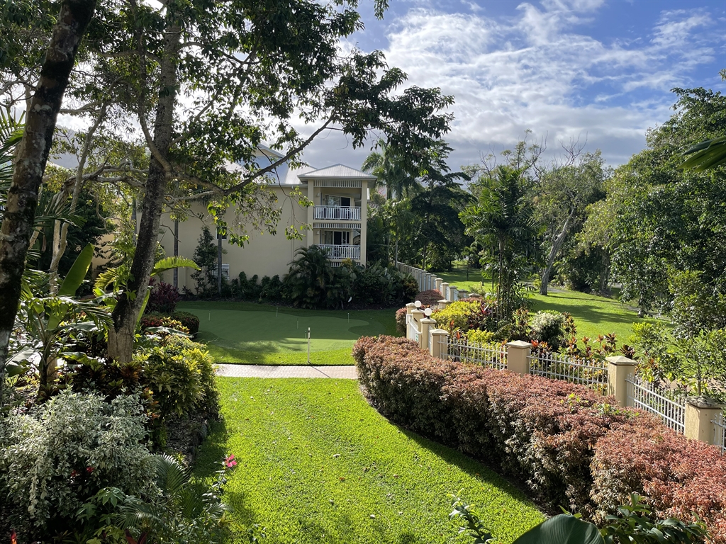 130 sqm • 3 Bedrooms • 2 Bathrooms • 1 Bathtub • Full laundry facilities • Self-contained kitchen • Full-sized fridge • Balcony • Stair access only • Air conditioned • WiFi • Smart TV • Foxtel • DVD & CD player • Hairdryer • Iron/Ironing board • Non-smoking rooms – smoking on balconies only • 10 minutes by car to Cairns CBD.Enjoy our generously sized deluxe apartment with views onto the Golf Course. An open plan living area with direct access to the balcony. Bedding configuration, sleeps up to 6 people: 3x Queen beds. Enjoy 2x bathrooms, 1x bathtub. The great sized balcony accommodates a great seating area with green views around to unwind and relax.