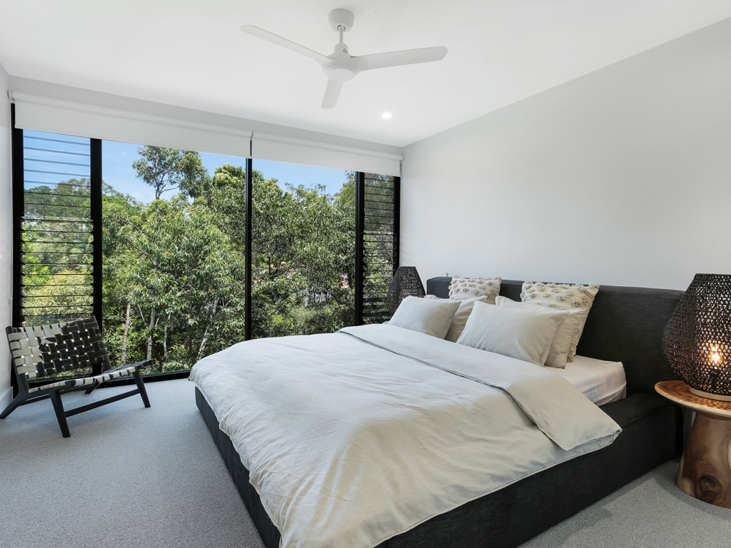 Parkridge Villas at 7 Sedgeland Drive is a collection of brand new designer 2-storey townhouses that are part of the exclusive Parkridge Noosa development. Nestled on the shores of Lake Weyba and surrounded by native bush, peace and tranquillity await you.Light timber flooring throughout, the neutral calming tones of the decor, and the quality of the furnishings, combine to reflect the European owners' impeccable sense of style. Bedrooms are carpeted and there are lots of comfortable places to relax in - this is truly a sanctuary for the soul.Guests have complimentary access to the Parkridge Social Club, with a 25m pool, gym, cafe and restaurant.The spaceThe main feature of the residence is th ...e seamless outdoor/indoor area that is the main living area. Slide back the large glass doors and enjoy the comfort of the outdoor lounge area, combined with shaded dining for 8. There is a small grassy area and a large BBQ, perfect for alfresco entertaining in style.Inside there is additional dining for 6, a modern galley-style chef's kitchen with all new appliances, and another super comfortable lounge area.Upstairs, the master suite features a luxurious King bed and spacious ensuite with walk-in rain shower and double vanities. A glass partition at shoulder level between the ensuite and bedroom allows you to enjoy the leafy outlook through the floor to ceiling windows, while still remaining private.The 2nd and 3rd bedrooms both have Queen beds and share a main bathroom with large walk-in rain shower and separate bath. The 2nd bedroom also features the same picture window as the master suite does. All bedrooms are air-conditioned and have ceiling fans.Connecting the guest bedrooms to the light-filled atrium staircase is a spacious study area/home office, perfect for those who need to take care of business while on holiday. A media room features large daybeds and a huge SmartTV offering FetchTV and Netflix capability.Additional features| Personal concierge service – we meet you at the property with your keys and are on-call 24/7, 365 days of the year| Ducted air-conditioning and ceiling fans throughout| Ample ventilation and natural light with plenty of glass louvred windows| Large SmartTV in media room with FetchTV, and Netflix capability| European Miele appliances, Sheridan linen and Tempur mattresses| Study area/home office on the upper level| Laundry with washer and dryer - adjoining powder room| Breville Nespresso coffee machine - pods provided| Access to the Parkridge social club, with 25m pool, gym, cafe and restaurant| Secure garage parking for 2 cars - short-term visitor parking availableLocationParkridge Noosa is adjacent to the Noosa Springs golf and spa complex with clubhouse restaurant, tennis courts, spa and championship golf course.Guests of 1001/7 Sedgeland Drive have access to the Parkridge Social Club, a space offering a cafe, convenience store and the newly opened Fish Parkridge restaurant. There is also a shared 25m pool and a gym offering classes and massage within the complex.Parkridge is an 8-minute drive to both Hastings Street and Main Beach, and to the surf beach at Sunshine Beach.Book directly with us and saveContact us today on 1300 810 944 or submit an enquiry and let us arrange your next Noosa luxury holiday accommodation at 7 Sedgeland Drive.Pool & beach towels are not provided but can be on request.Strictly no parties, gatherings or functions please.