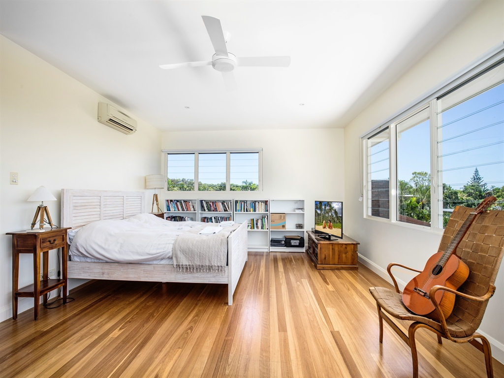 57 Parkedge Road in Sunshine Beach sits at the elevated western end of Parkedge Road. It offers the most amazing 270-degree views out over the Noosa Hinterland and all the way down the coast to Mooloolaba.Parkedge Road runs along the southern edge of the Sunshine Beach section of the Noosa National Park. It is a popular access point for many of the walking trails that criss-cross over and around Noosa Hill. From here you can also take the coastal track around the headland to Hastings Street.57 Parkedge Road is split over two levels with the top level given over entirely to a parent's retreat. Here you will find a King bed, large walk-in-robe, enclosed office area, and spacious en-suite with shower. There is a TV with ... Foxtel, air-conditioning and a ceiling fan for added comfort. This room has the best views in the house, offering both sunrises and those famous Noosa sunsets. Lots of louvred windows allow the cooling ocean breezes to flow through.Downstairs there are three additional bedrooms. Bedroom 2 has a King bed, small walk-in-robe and en-suite with shower. Bedroom 3 has two Single beds and an en-suite and bedroom 4 has one single bed. There is a separate family bathroom adjacent with an over-bath shower and separate WC. All of these rooms have external access via glass doors to the side of the house, and all are air-conditioned and have ceiling fans.The living area is spacious and light-filled. Retractable doors and windows can all be opened up to let the outside in. Air-conditioning is not required in this part of the house in the warmer months due to the cross-flow of air that is created. A gas fire takes the chill off on those cooler winter evenings.Relax on the comfortable couch and take in a movie on Foxtel or the DVD player. Tinker the ivories on the electronic piano or grab a book from the many provided. Take a dip in the pool, or simply kick back on the outdoor deck and enjoy the views. It's all up to you.The kitchen is fully equipped with two serving hatches that open out to an outdoor breakfast bar. There is an indoor dining table to sit 6 or choose to sit outside on the spacious deck and dine alfresco. A small BBQ/grill is provided for guest use.Between the living area and the lower level bedrooms there is a small office space and a laundry with washer and drier. Sliding doors can be closed to separate the two areas of the house.Children will love the cubby house that is hidden in the native woodland that sits just below the house. There is also a small grassed area adjacent to the pool and an outdoor shower for washing the sand off.Leave the car at home and take a short path through the trees to the main bus route that will take you to Hastings Street and beyond. Or for the more energetic hike through the National Park and really earn that morning tea! The main village of Sunshine Beach is a 15-minute walk or 5-minute drive away, offering a great selection of cafes, bars and restaurants.There is parking for two cars in the secure remote access garage, with room for two more in the driveway.Contact us today on 1300 810 944 or submit an enquiry and let us arrange your next Sunshine Beach holiday accommodation at 57 Parkedge Road.