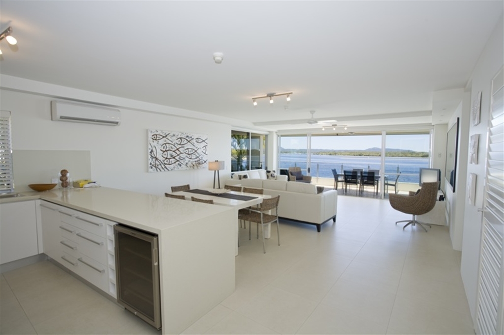 Rates are for 4. Maximum occupancy is 5. Bedding configuration is 1 King, 3 single beds. Fully self-contained with large dining/living area. BBQ. Great views over the Noosa River.