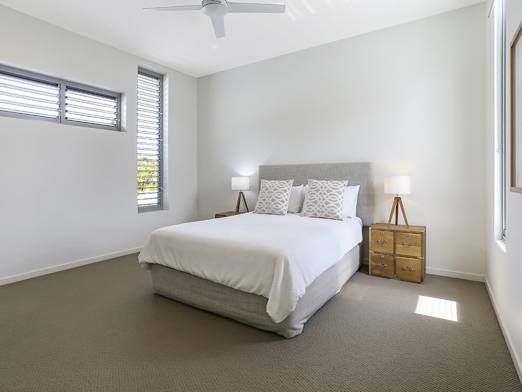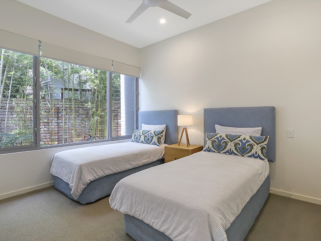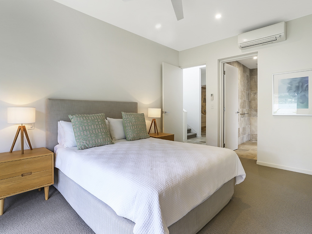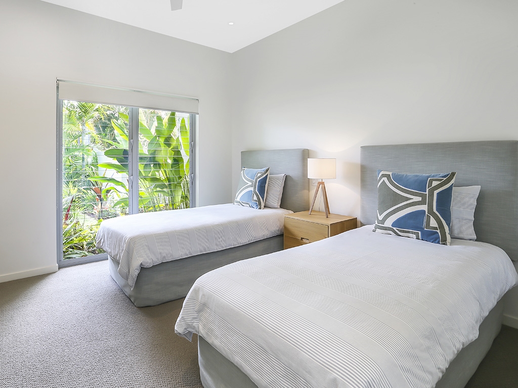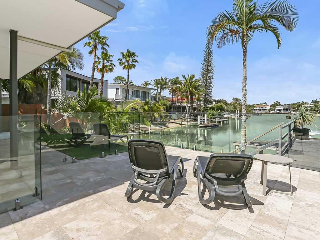 12 Ravenwood Drive on Noosa Sound is a brand new 5-bedroom waterfront residence with a private beach and boat jetty.Beautifully styled throughout using stone and timber in calming neutral tones, this is a wonderful holiday home for extended families or groups of friends. There is lots of room for everyone to spread out and relax.The spaceThe main focus of the home is the very spacious living area that flows out to the beach and poolside terrace. Slide back the fully stacking glass doors and create a seamless indoor-outdoor entertaining area.The very modern sleek kitchen is fully-equipped and features Miele appliances and a wine fridge.There is indoor dining for 8 with a breakfast b ...ar to seat 4, in addition to outdoor dining for 8. Daybeds and beanbags are perfect for relaxing in and enjoying the river views from. Or take a dip in the pool to the side of the house, also with a spacious deck area to catch some rays from.On the lower level, there are 4 bedrooms - two rooms have twin singles, the others have Queen beds. One of the Queen rooms has an ensuite with a shower, while the others share a spacious bathroom with a bath and separate shower.All rooms have ceiling fans but only the Queen room with ensuite has air-conditioning. This room also overlooks the lush tropical garden at the front of the property.The upper level is given over to the master suite, with Queen bed. Walk through the large dressing area to a cool ensuite with a shower. This room has its own ducted air-conditioning, ceiling fan and TV. Louvred shutters provide plenty of airflow from the river breezes.Additional features| High ceilings on the lower level with lots of skylights let the light flood in| Beautiful cooling stone tiles in the main areas - all bedrooms are carpeted| Remote-control privacy blinds in the living area on all windows| Air-conditioning throughout (excl. 3 of the lower-level bedrooms) - ceiling fans in all bedrooms| Integrated outdoor barbeque area with large Beefeater BBQ - outdoor dining to seat 8| Guest laundry with washer and dryer - there is also an external drying area| Powder room and main bathroom on the lower level| Outdoor shower| Shared private boat jetty| Private sandy beach with shallow access to the river| Secure remote access parking for 1 car - room for 2 others in the driveway, with on-street parking available (please note that the owner's car is parked in the garage also)Location12 Ravenwood Drive is a 15-minute easy flat walk to Hastings Street and Main Beach - or hop on the bus that passes by on Noosa Parade nearby. A 10-minute walk in the other direction will take you to Quamby Place, where you'll find award-winning restaurants such as Wasabi, Rickys, Woodfire Grill and Rocksalt.Of course, with your own private beach, pool and boat jetty you might not want to venture further that the front door during your stay here! But if you do this property is very well placed to get you to all of Noosa's main attractions with ease.Book directly with us and saveContact us today on 1300 810 944 or submit an enquiry and let us arrange your next Noosa luxury accommodation at 12 Ravenwood Drive.Beach/pool towels are not provided but can be on request.Strictly no parties, gatherings or functions please.